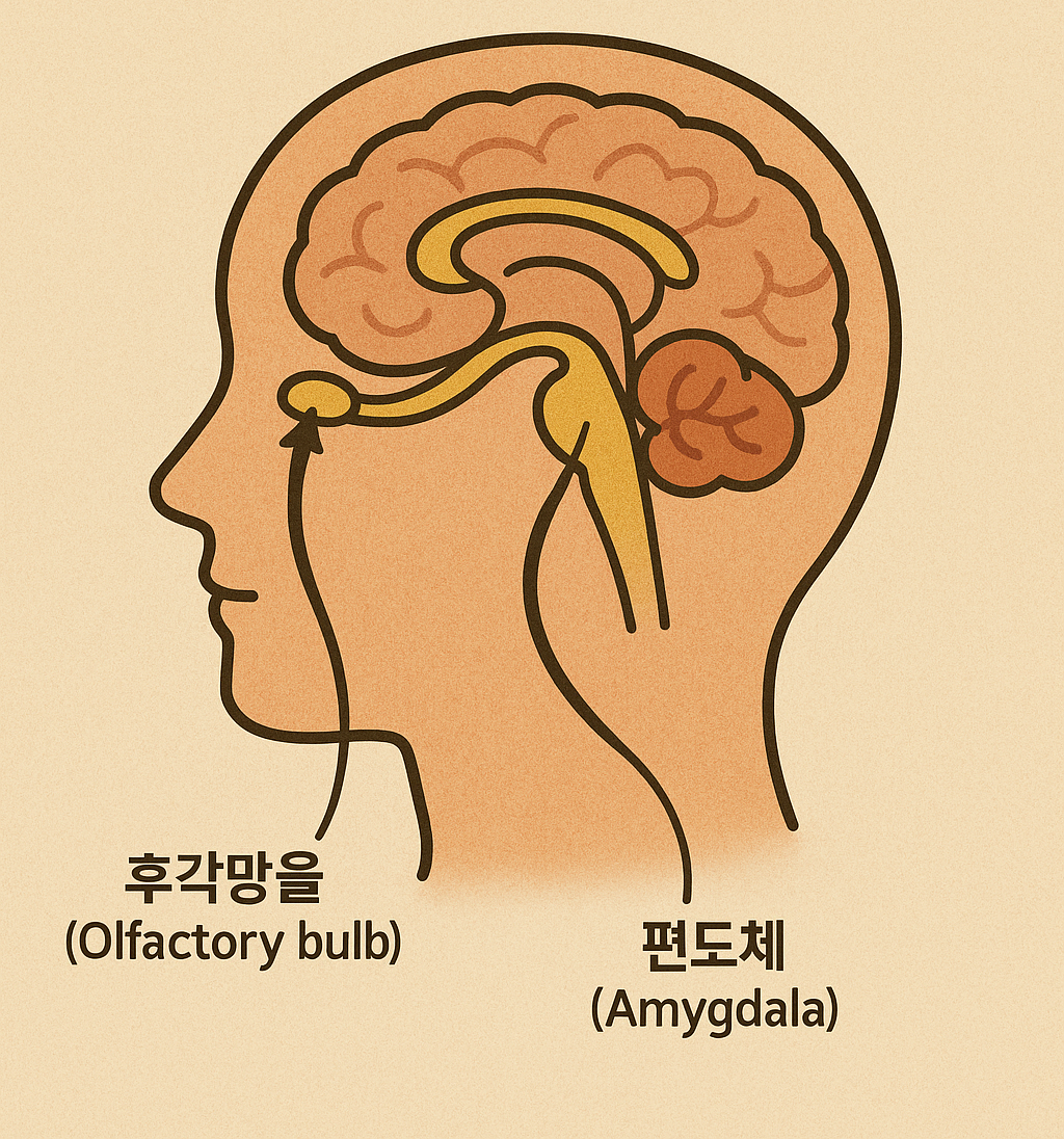 즉, 냄새는 **감정(편도체)**과 **기억(해마)**를 직접 자극하기 때문에,
